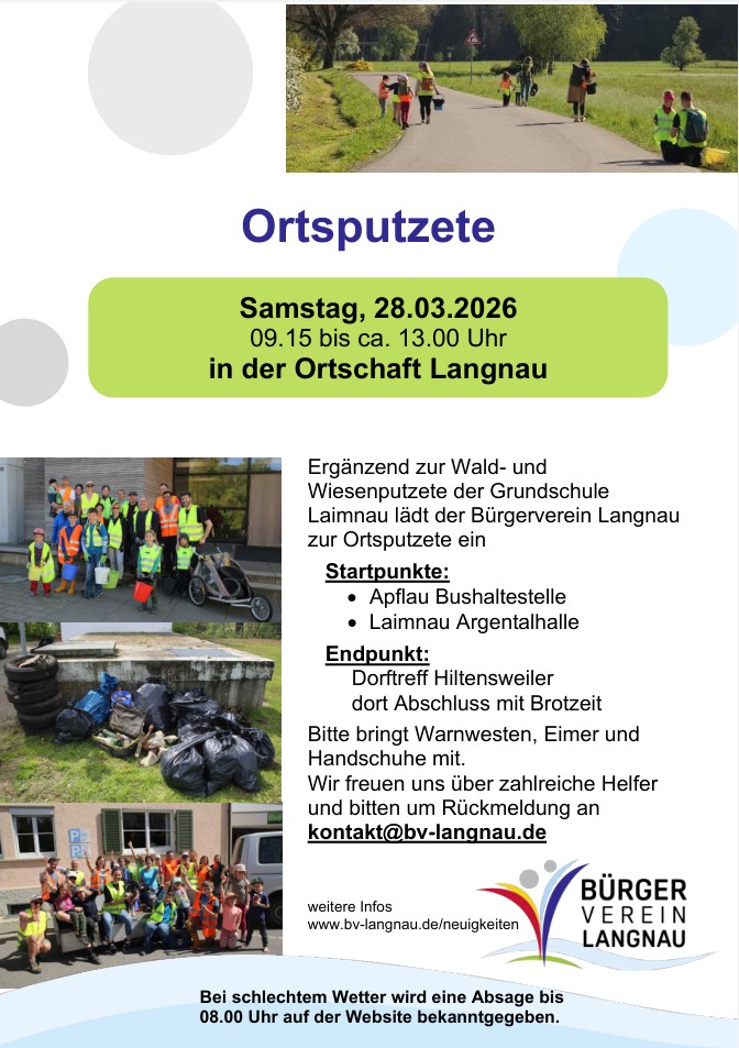 So hoffen wir, dass viele von Euch an unserer Ortsputzete teilnehmen – Daten seht Ihr im flyer rechts.
