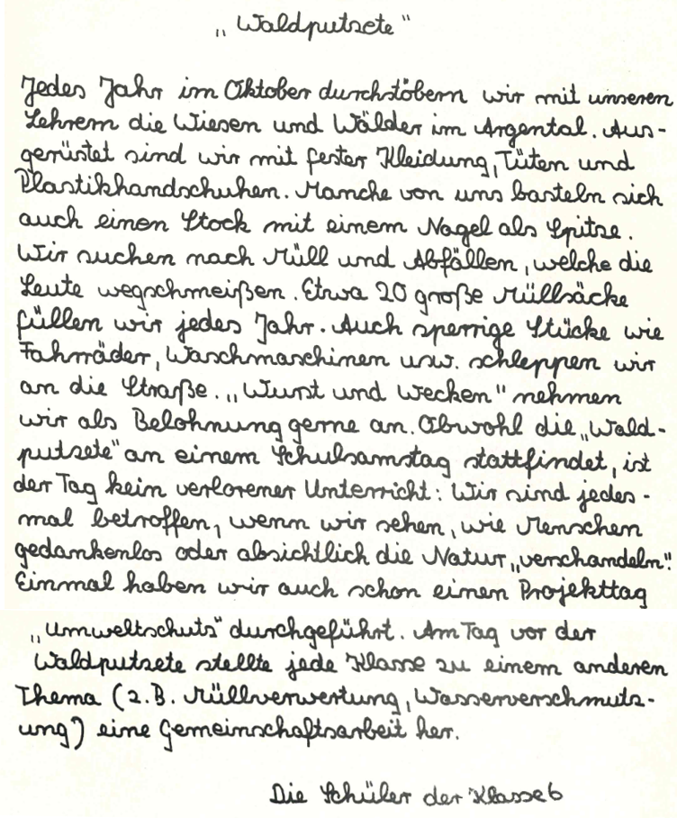 schon seit Langem führen Lehrerinnen und Lehrer der Schule in Laimnau mit ihren Schülerinnen und Schülern jährlich eine Putzete durch. Sie befreien dabei Laimnau, und mit ansehnlichem Radius auch seine Umgebung von Müll. Die Säuberungsaktion wird pädagogisch vorbereitet und adressiert an Kinder, die noch in erheblichem Maß erreichbar sind für die Thematik … ein sehr wertvolles Engagement.